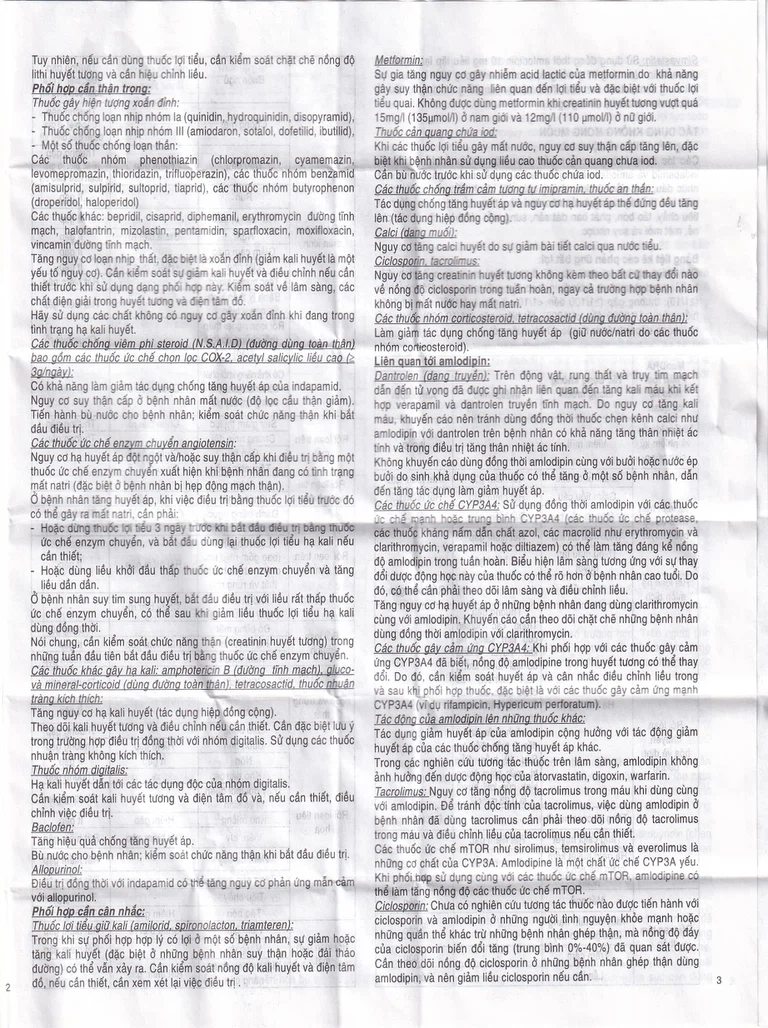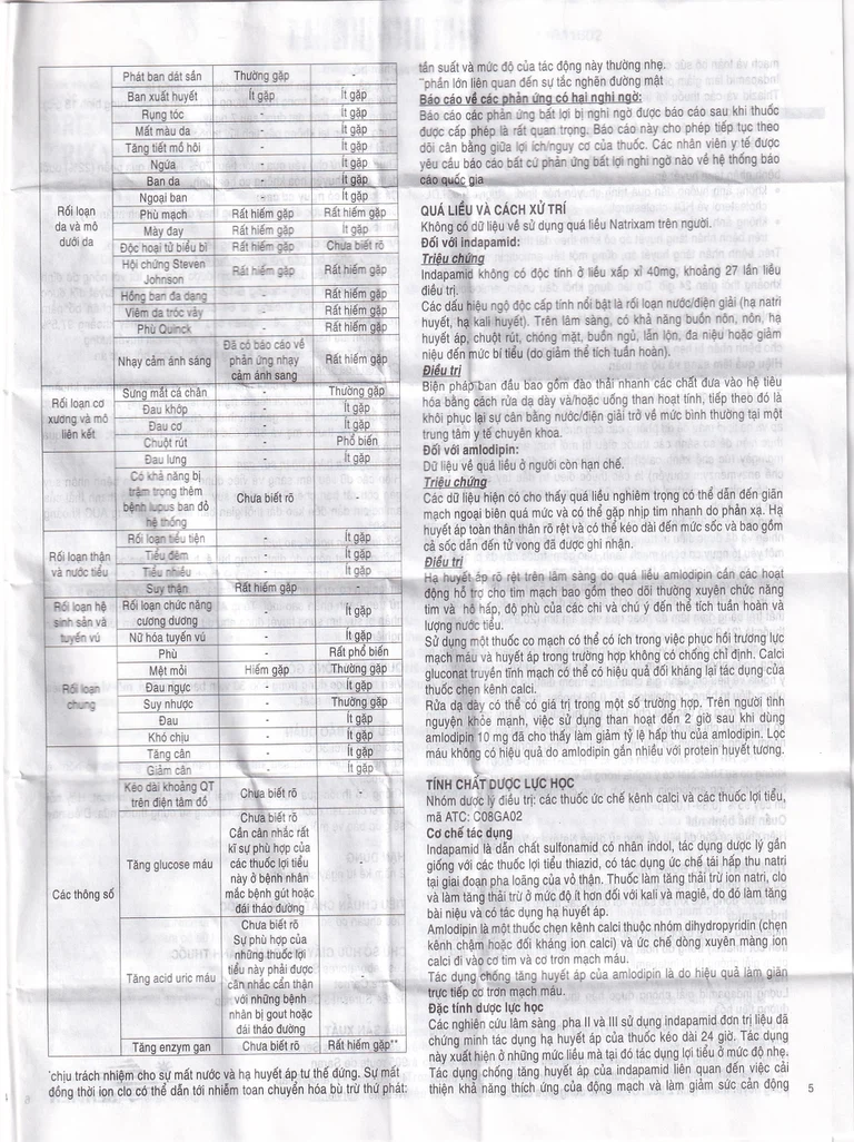 Dạng phối hợp liều cố định không phù hợp với điều trị ban đầu. Chỉ dùng cho bệnh nhân đã dùng indapamide và amlodipine riêng rẽ có cùng hàm lượng.