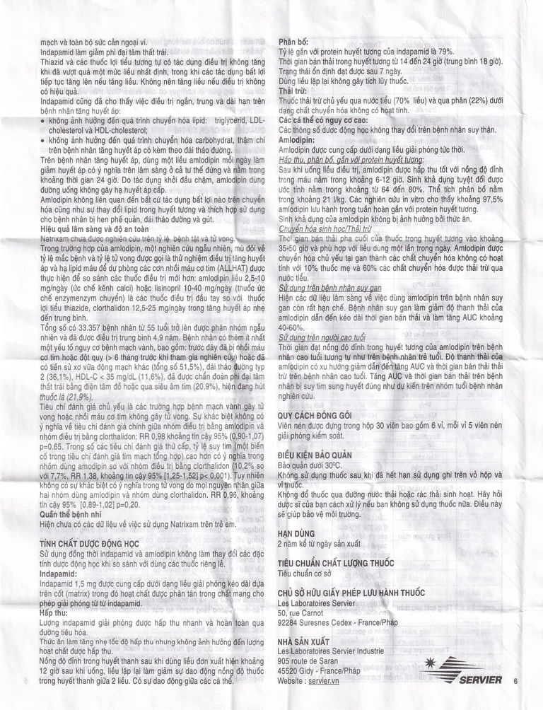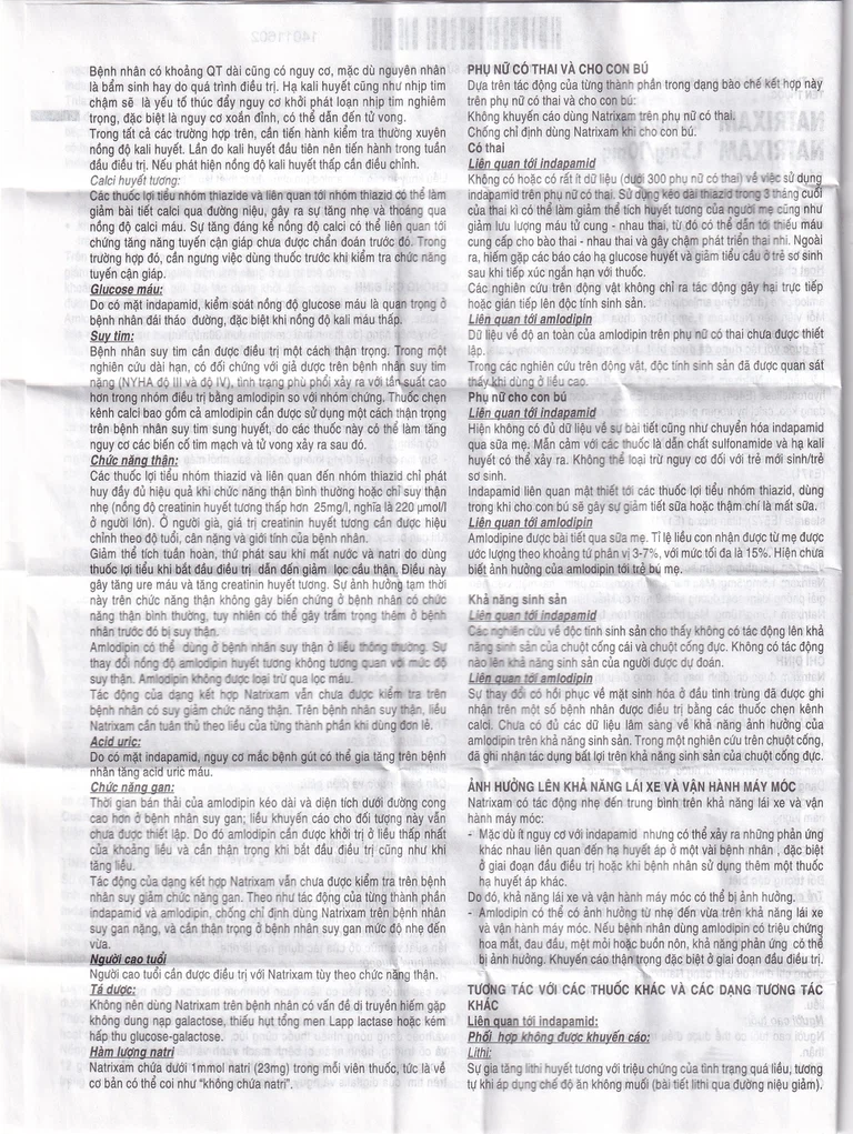 Thuốc Natrixam được chỉ định thay thế trong điều trị tăng huyết áp cho bệnh nhân đã dùng indapamide và amlodipine riêng rẽ có cùng hàm lượng.
