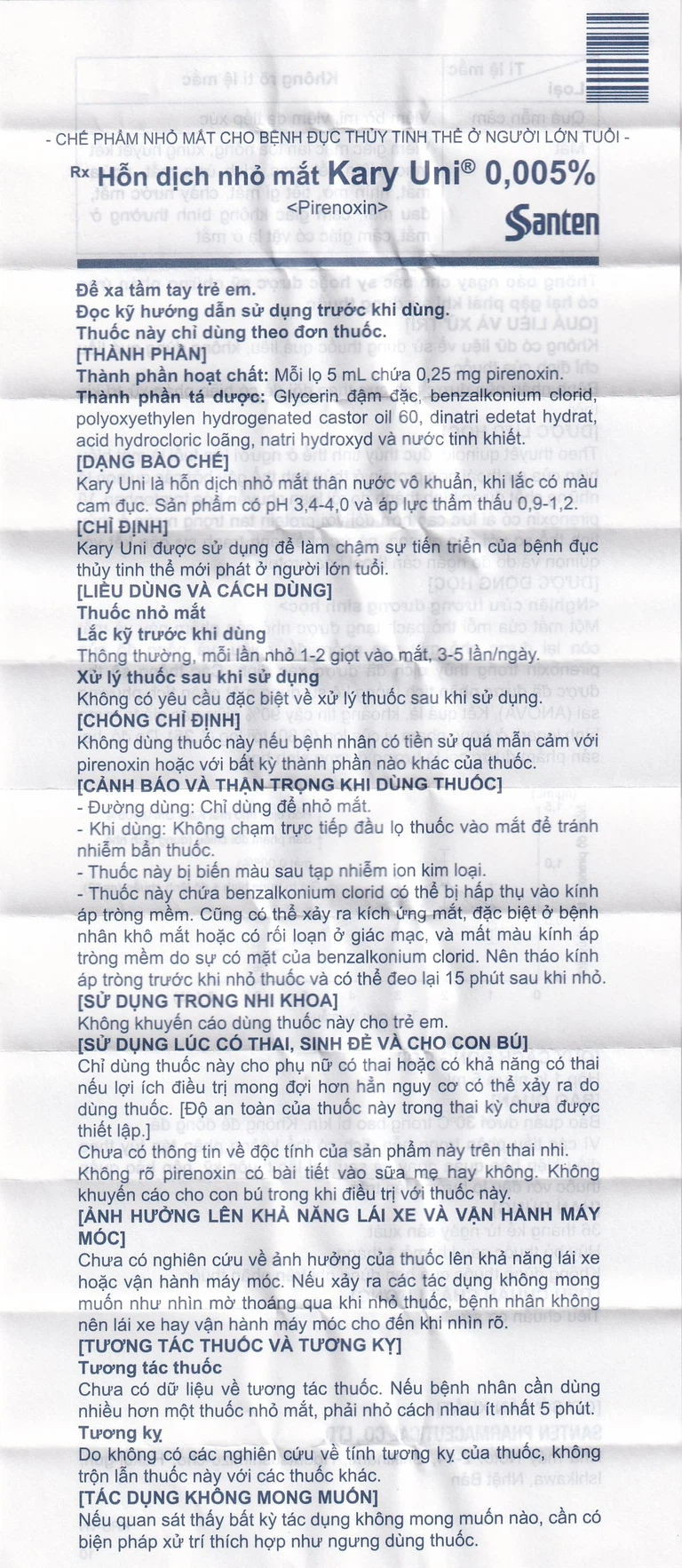 Thuốc Kary Uni 5 ml chỉ dùng để nhỏ mắt. Không dùng các đường khác.
