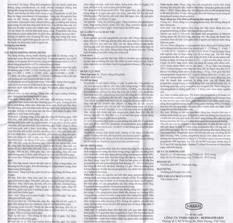 Tính an toàn và hiệu quả của pregabalin với trẻ em < 1 tuổi và thanh niên (< 12 – 17 tuổi) chưa được thiết lập.