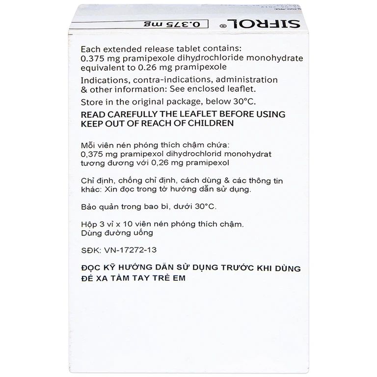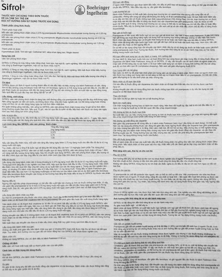 Cách dùng Thuốc Sifrol 0.375mg