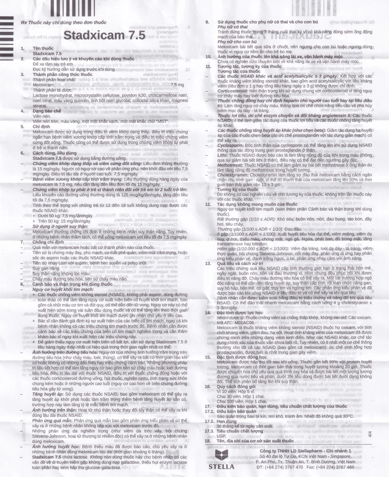Để giảm thiểu nguy cơ xuất hiện biến cố bất lợi, cần sử dụng Stadaicam 7.5 ở liều hàng ngày thấp nhất có hiệu quả trong thời gian ngắn nhất có thể.