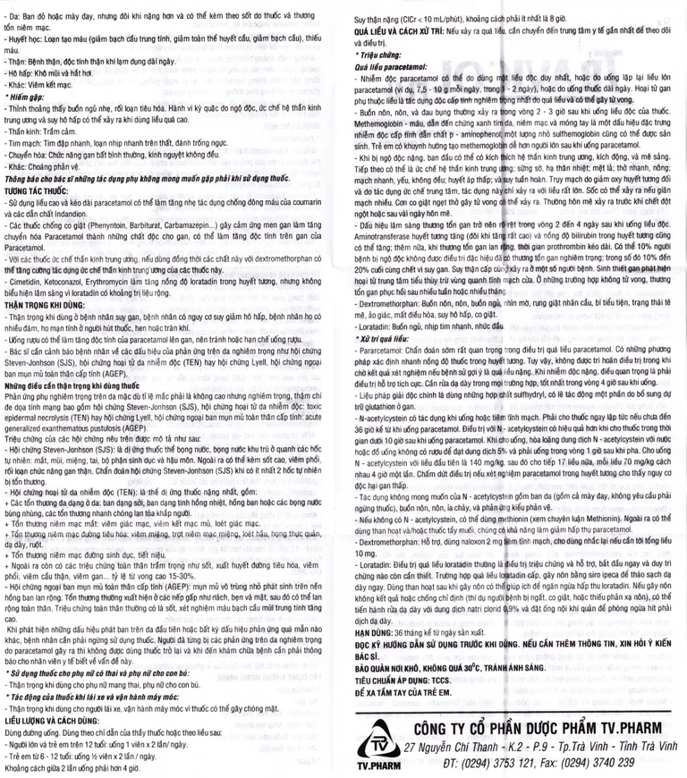 Khi phát hiện những dấu hiệu phát ban trên da đầu tiên hoặc bất kỳ dấu hiệu phản ứng quá mẫn nào khác, bệnh nhân cần phải ngừng sữ dụng thuốc. Người đã từng bị các phản ứng trên da nghiêm trọng do paracetamol gây ra thì không được dùng thuốc trở lại và khi đến khám chữa bệnh cần phải thông báo cho nhân viên y tế biết về vấn đề này.