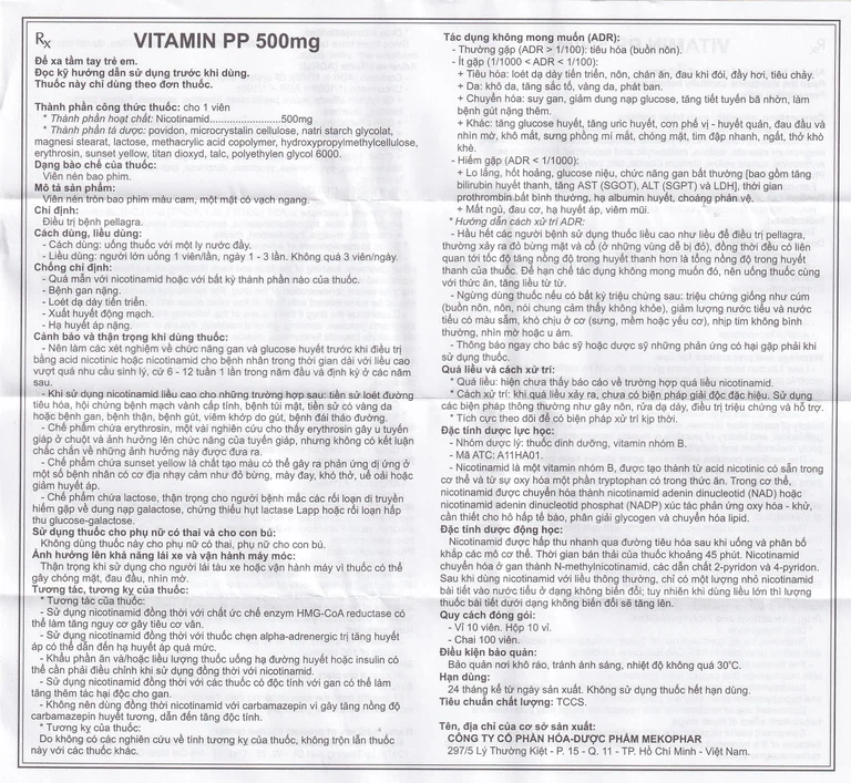 Cách dùng Thuốc Vitamin PP 500mg