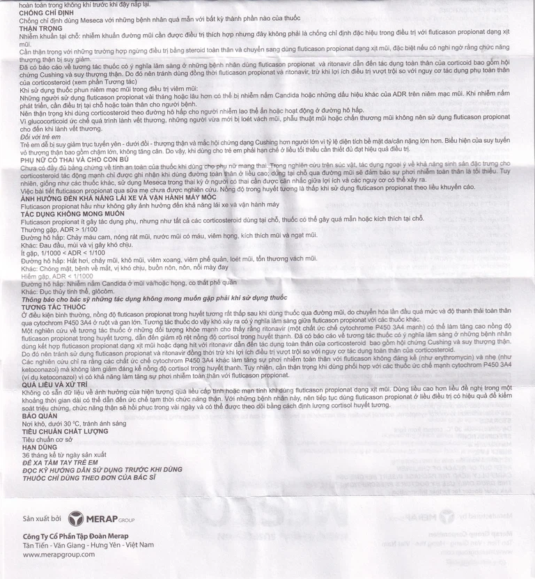 Nhiễm khuẩn tại chỗ: Nhiễm khuẩn đường mũi cần được điều trị thích hợp nhưng đây không phải là chống chỉ định đặc hiệu trong điều trị với fluticason propionat dạng xịt mũi.