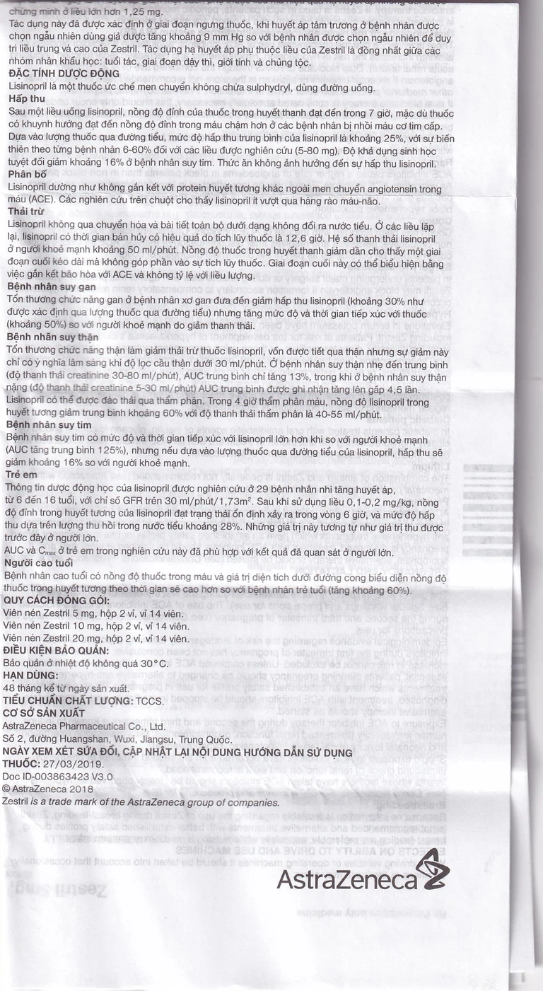 Cách dùng Thuốc Zestril 5mg