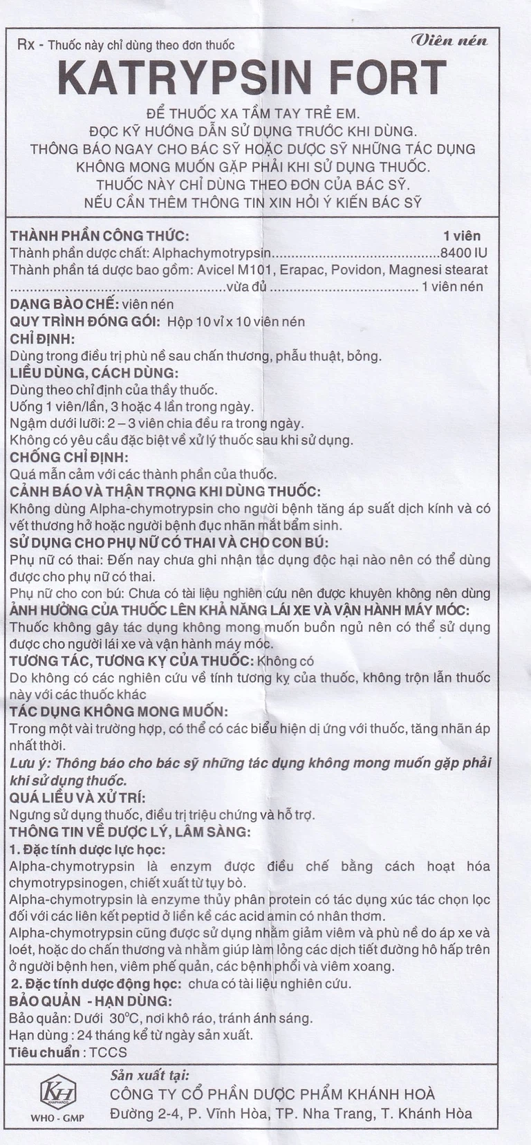 Cách dùng Viên nén Katrypsin Fort 8400IU